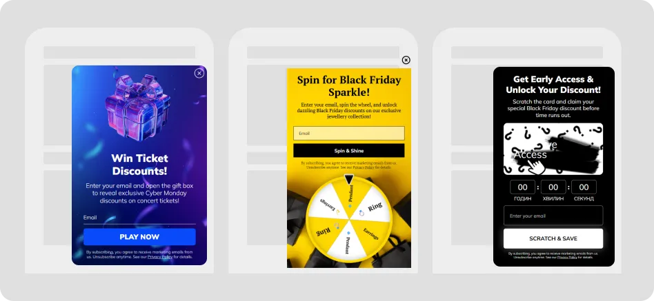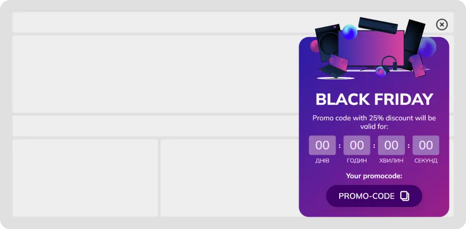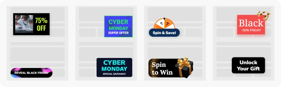 Black Friday and Cyber Monday are dominated by promotional widgets — last year they made up 86% of all BFCM campaigns run by Claspo users. They drive instant clicks, urgency, and sales at scale.