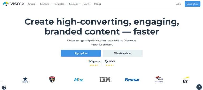 Visme is an all-in-one visual content creation platform with built-in AI that helps marketing teams create on-brand assets faster - presentations, infographics, reports, social graphics, and more. With generative tools, templates, and collaboration features, it’s a strong choice for turning ideas into polished campaign visuals without starting from scratch. Visme’s AI toolkit includes an AI writer, AI designer, AI text to image generator and the recently launched AI Sports design tool. These AI powered features can help users to instantly turn ideas into stunning visuals. With Visme’s AI capabilities, you don’t have to start your design process from scratch, just use a single text prompt to turn your idea into visuals.