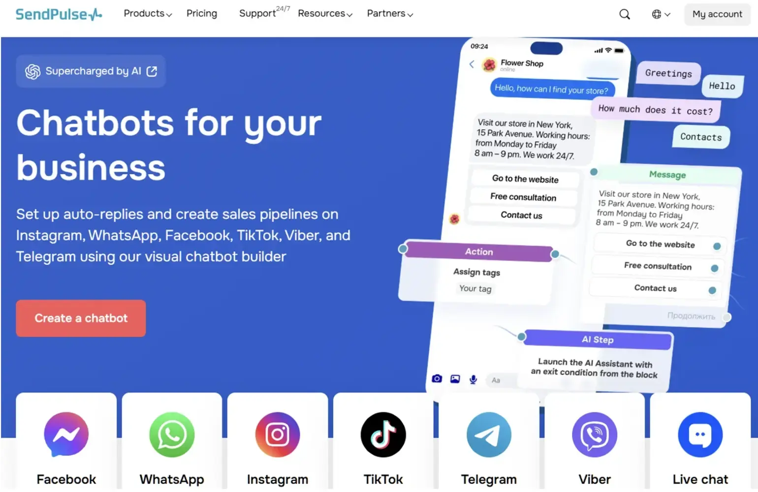 SendPulse’s chatbot builder supports integration with ChatGPT, enabling bots to handle complex dialogs, answer customer questions, and provide contextual recommendations. Chatbots can be deployed across popular messengers such as Telegram, WhatsApp, Facebook Messenger, Instagram, TikTok and Viber. Using visual flow builders, businesses can easily create surveys, qualification questions, and sales funnels that improve user engagement from the first interaction. ChatGPT integration allows the bot to generate natural responses, assist with product selection, and support multiple languages without additional staffing costs.