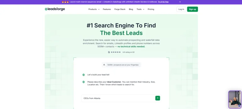 - Leadsforge offers both free and paid plans. Detailed pricing depends on usage and requirements and is available upon request. A free plan with limited credits is available for getting started.