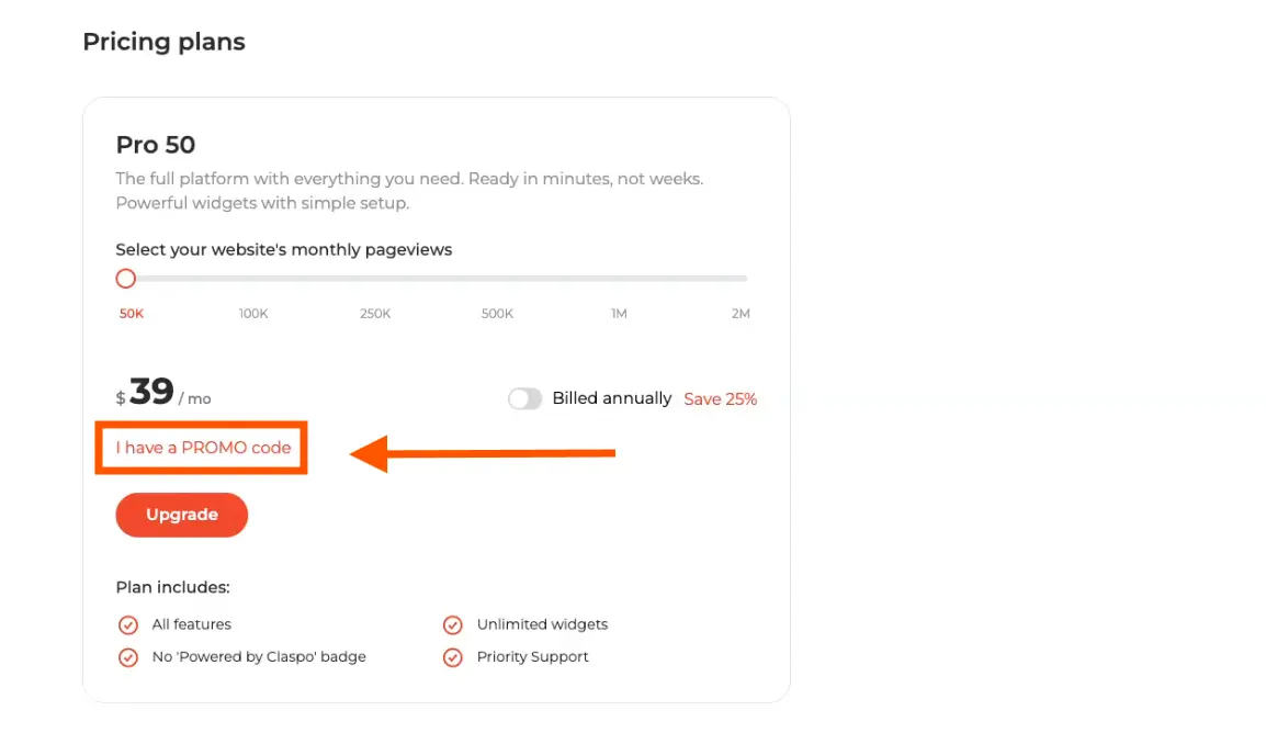 Découvrez toute la valeur de Claspo avant de payer. Nous avons ajouté un essai gratuit de 14 jours pour tous les forfaits payants. Disponible pour les nouveaux abonnés et les anciens utilisateurs n'ayant pas eu d'abonnement actif au cours des 30 derniers jours.