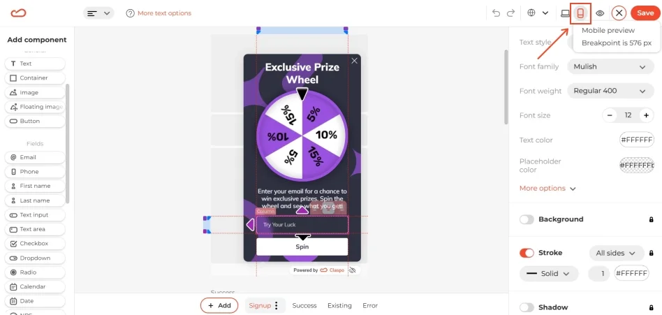 But it doesn’t stop there. Claspo offers full creative freedom: you can fully customize every element of your popup’s design — fonts, colors, layout, animations — to match your brand perfectly. The mobile version is just as flexible, ensuring that every popup is optimized for touchscreen interactions and looks just as good on a phone as it does on desktop.