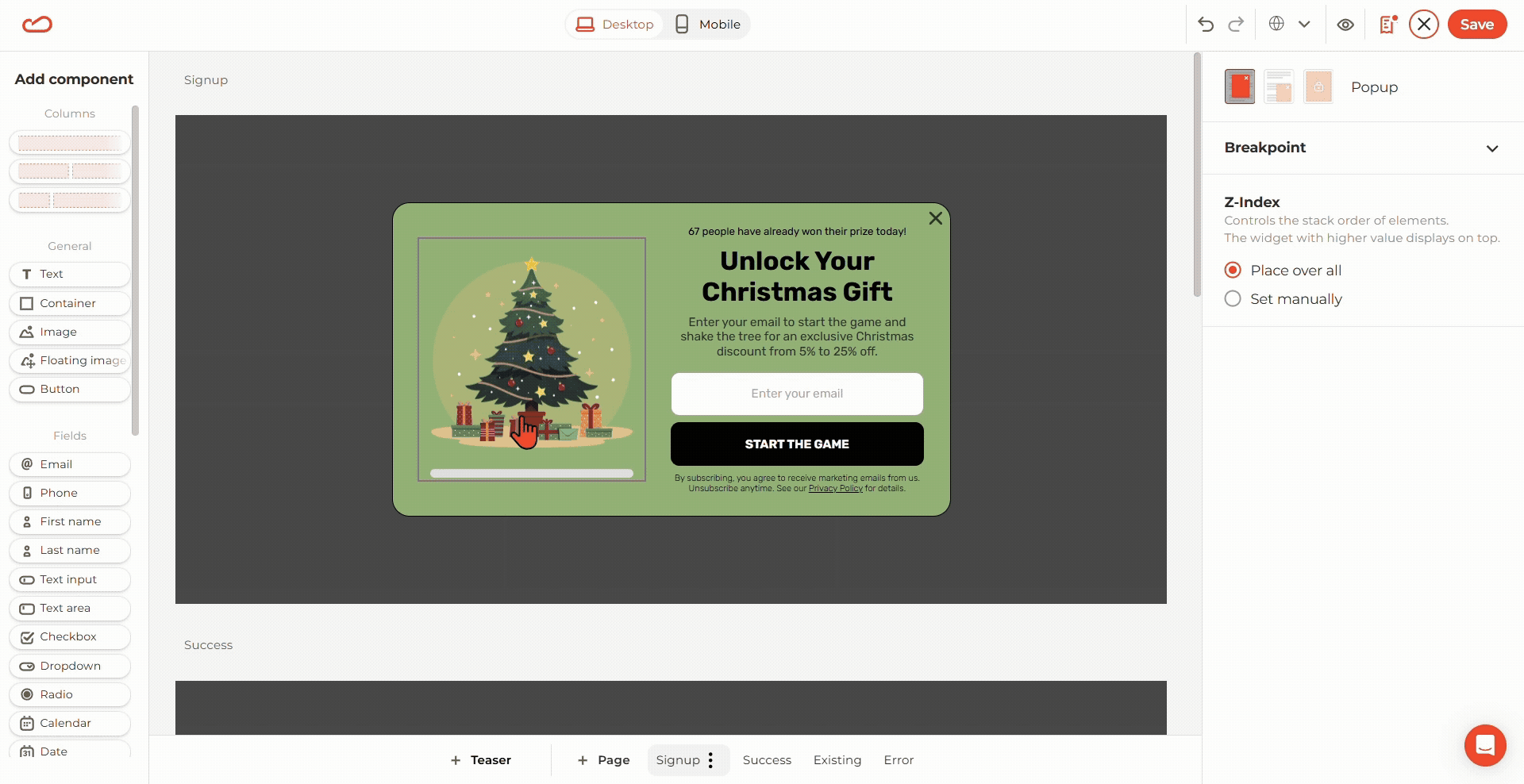Teasers are perfect for subscription forms, gamified discounts, and limited-time offers.