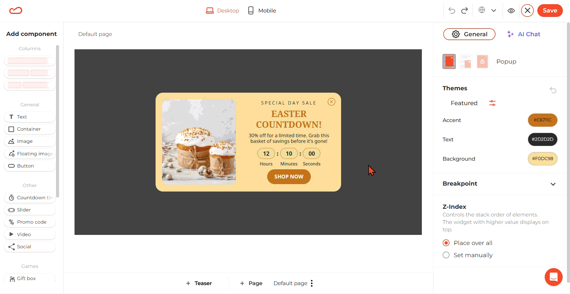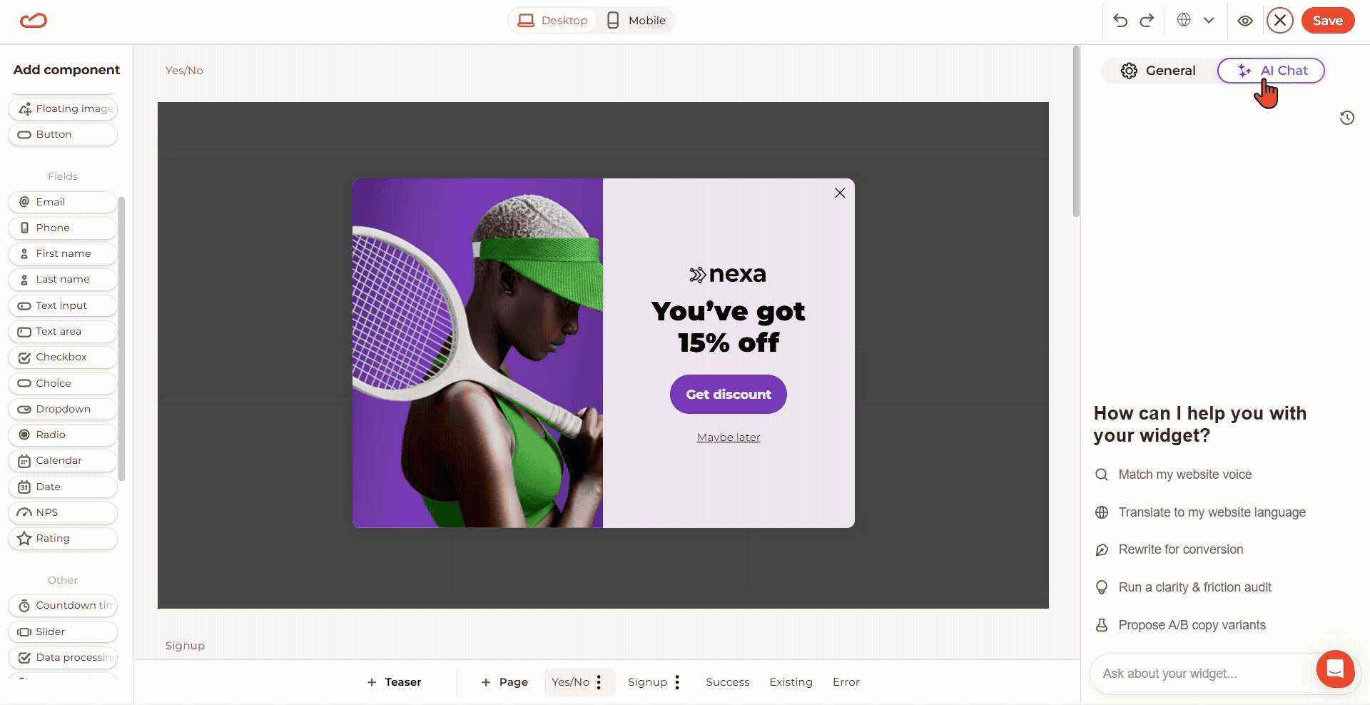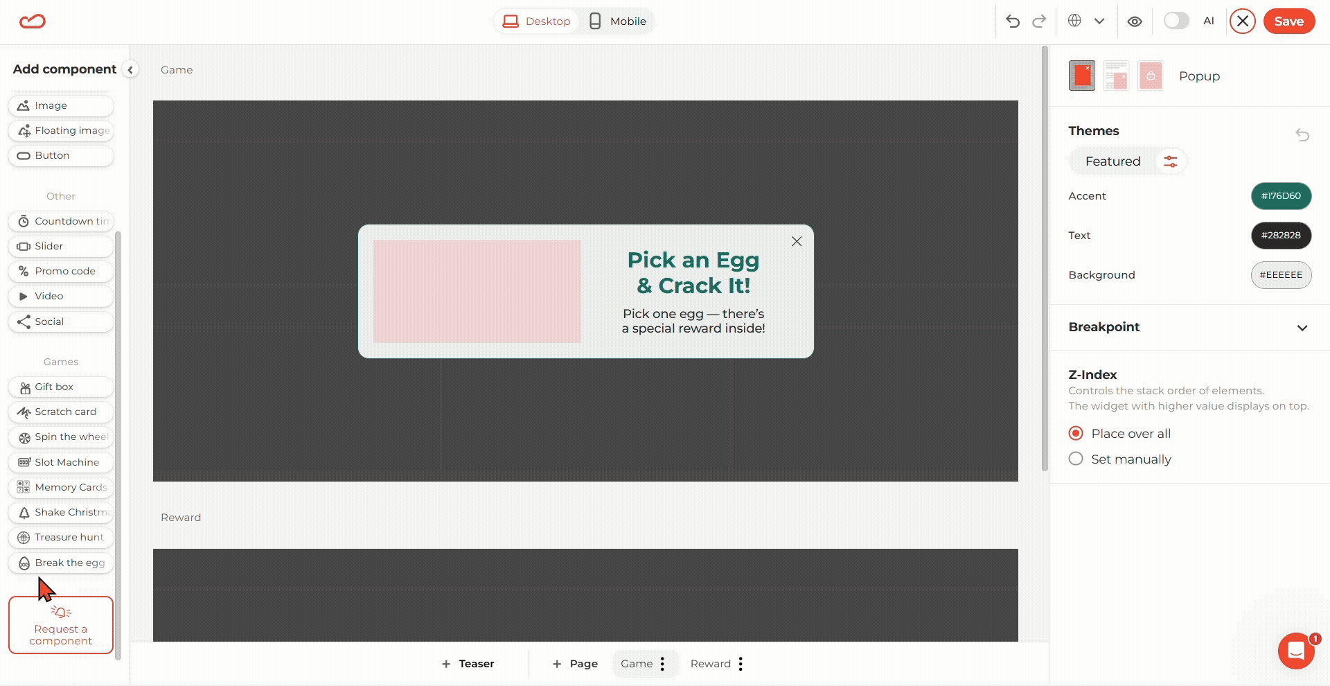 We're currently beta-testing a custom component that lets you generate unique games for your popups simply by chatting with our AI agent.