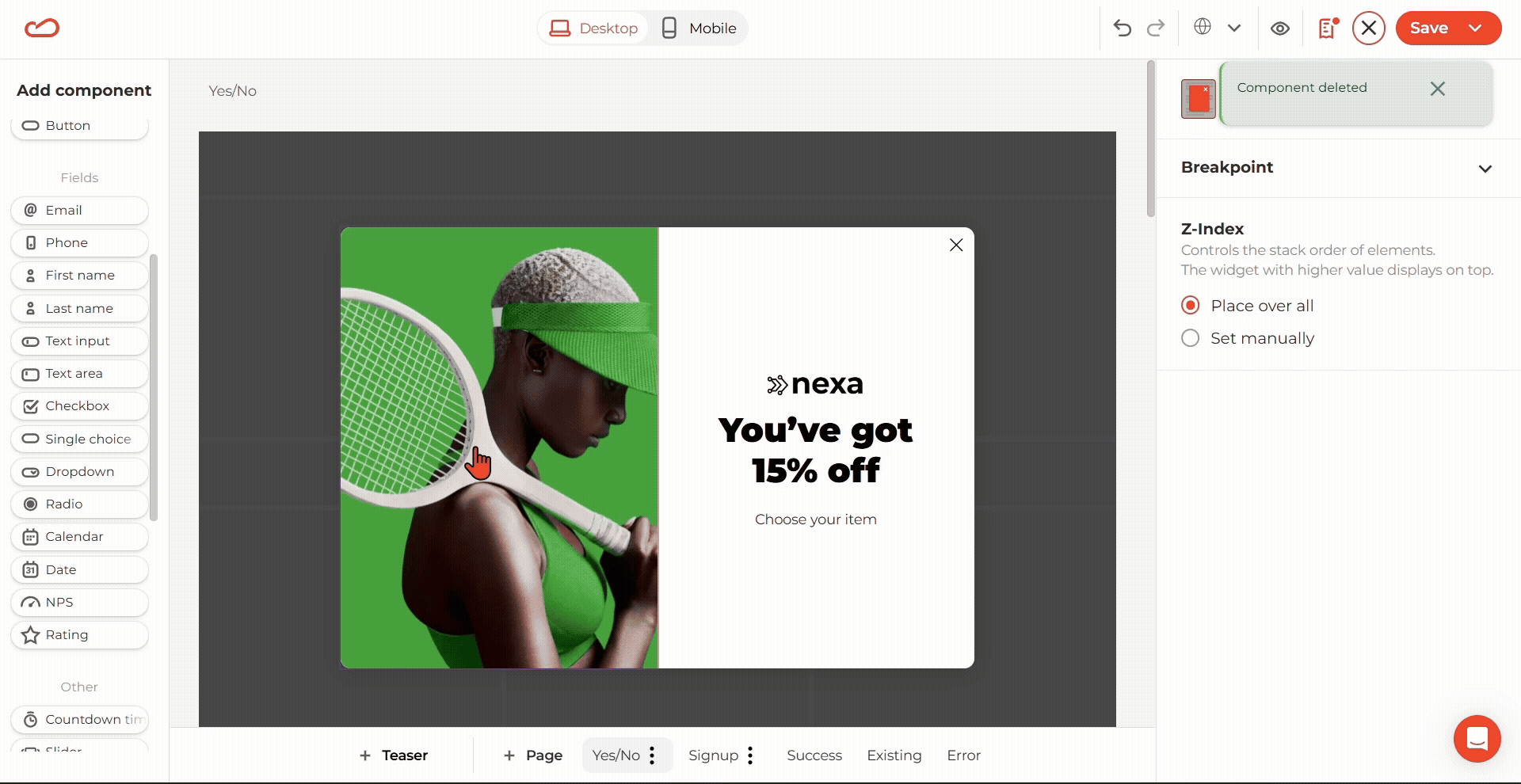 Мы добавили переключатель «Hide overflow» (Скрыть выход за границы) для колонок. Он обрезает любые части компонента, выходящие за границы колонки. Это особенно удобно для создания дизайна «полуколеса» для компонента Spin-the-Wheel.