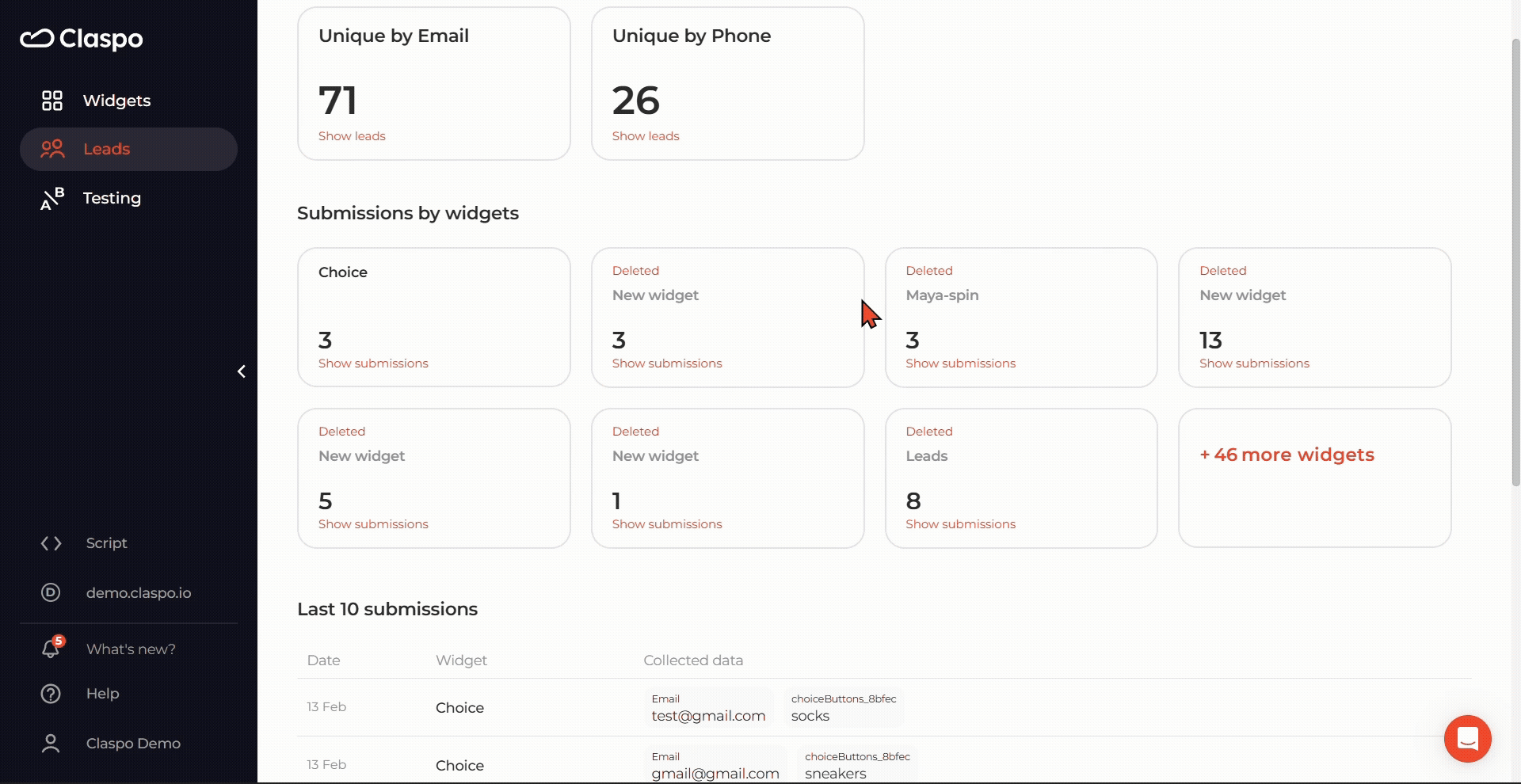 Раздел Leads получил масштабное обновление — теперь это ваш центральный хаб для отслеживания всех данных, собранных через Claspo. Больше не нужно переключаться между интеграциями, экспортировать CSV или искать данные в деталях виджетов. Теперь вы можете анализировать вовлеченность, отслеживать отправки и определять самые эффективные виджеты — всё в одном месте.